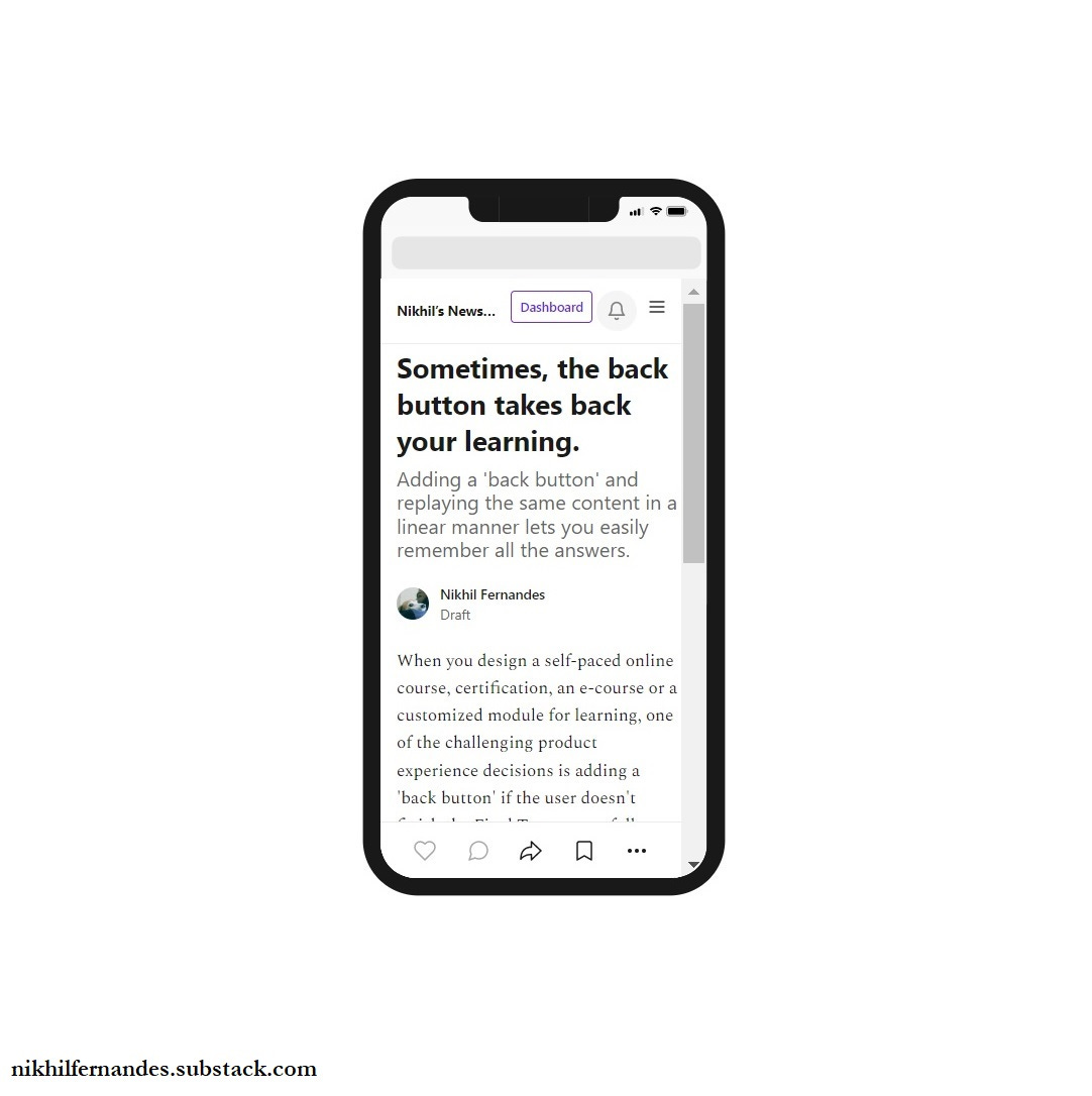 When you design a self-paced online course, certification, an e-course or a customized module for learning, one of the challenging product experience decisions is adding a 'back button' if the user doesn't finish the Final Test successfully.